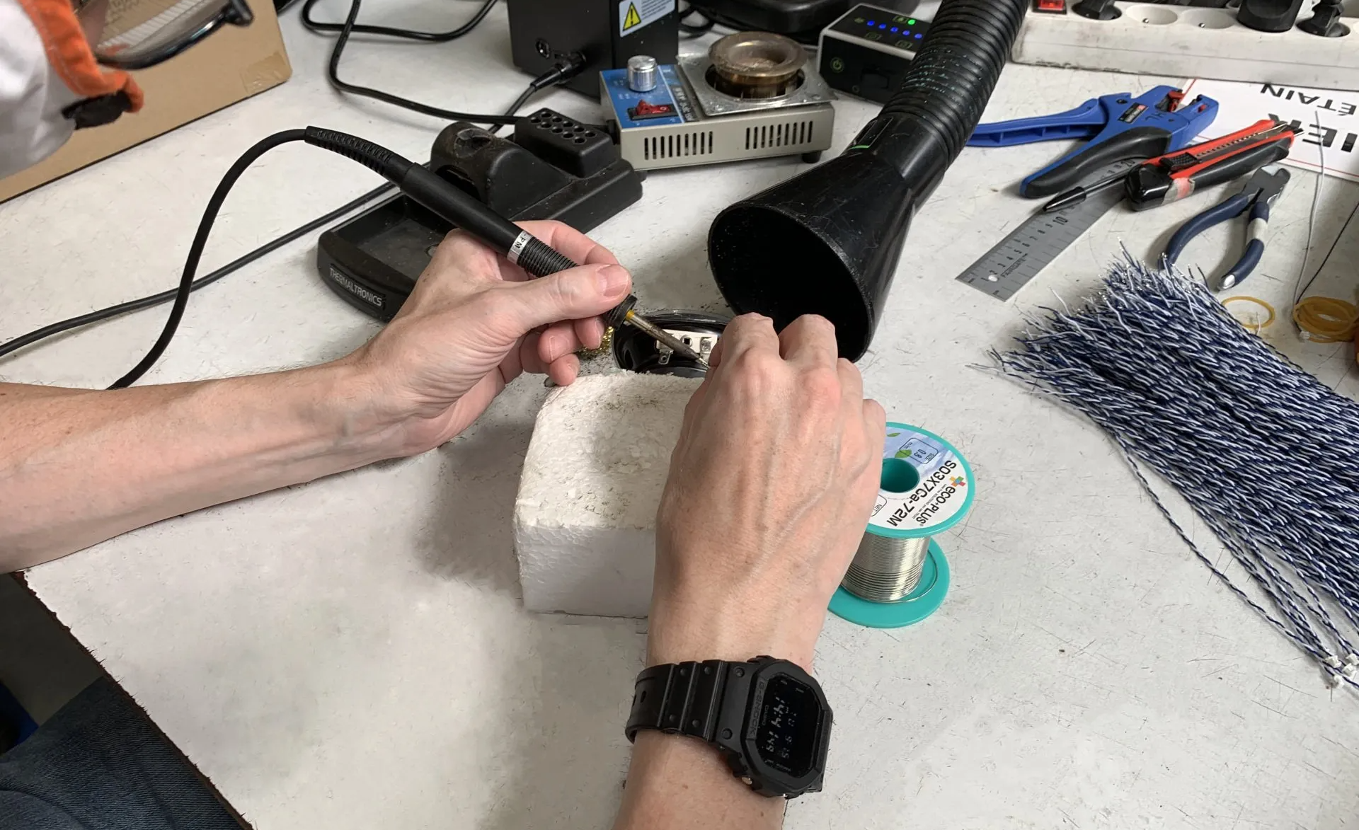 • Électronique : Préparation et assemblage des différents composants. Réalisation de soudure sur cartes électroniques. Assemblage et câblage de diffuseur de parfum.